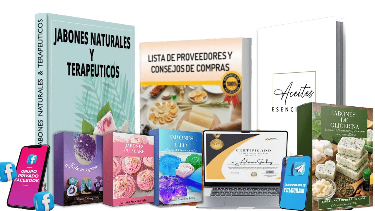 Bonos especiales incluidos: Ebook de Jabones Cupcake y Jabones Gelatina, ideales para diseños creativos y aumentar tus ventas.